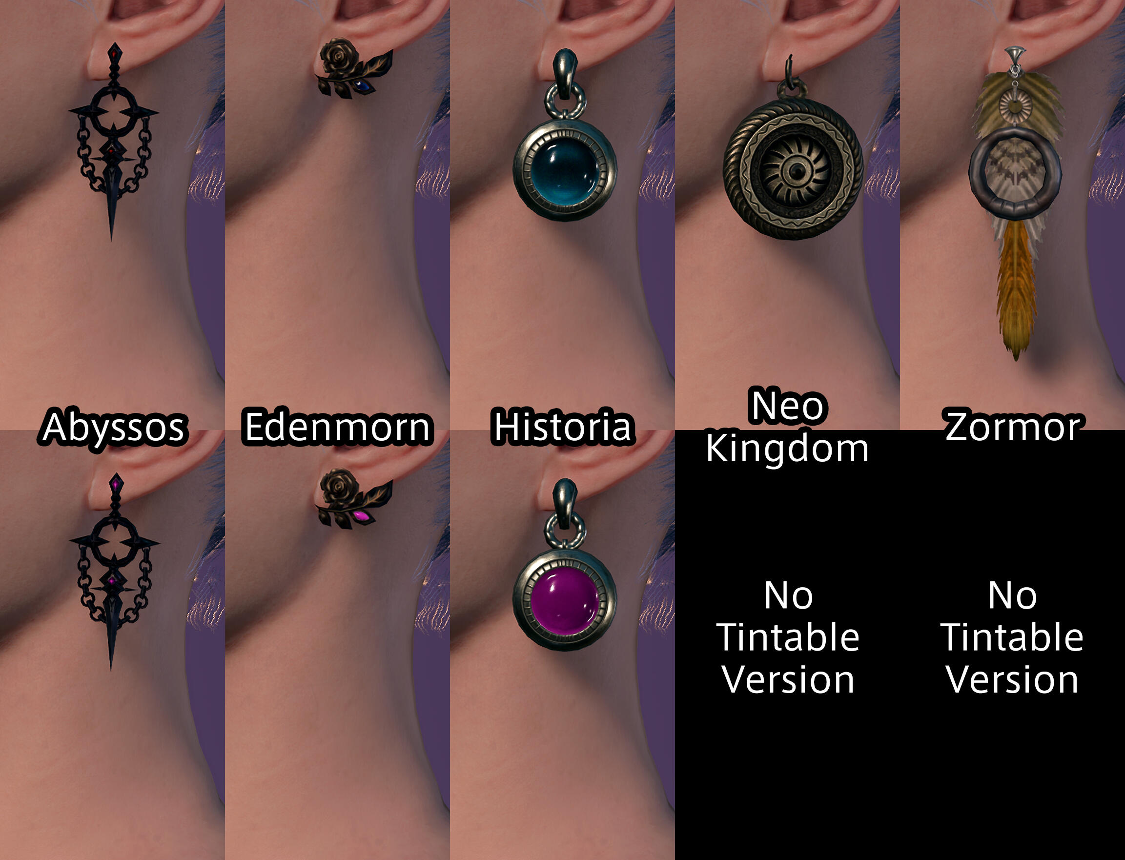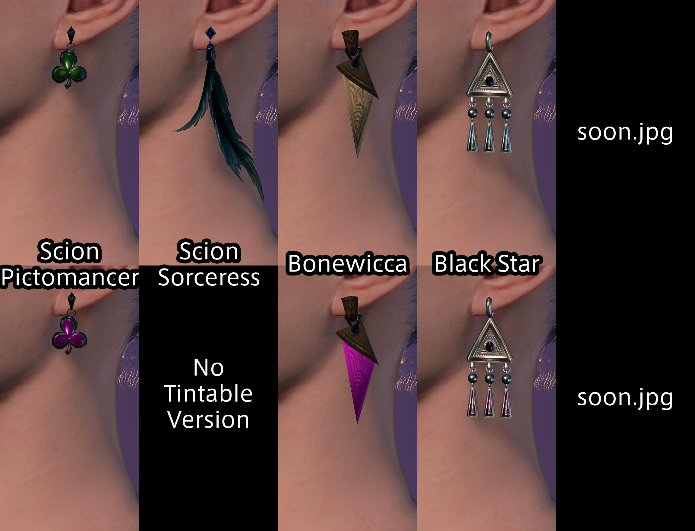 A selection of earrings for character creation ported from FFXIV, with some tweaks, updated to no longer use Virtual Textures.