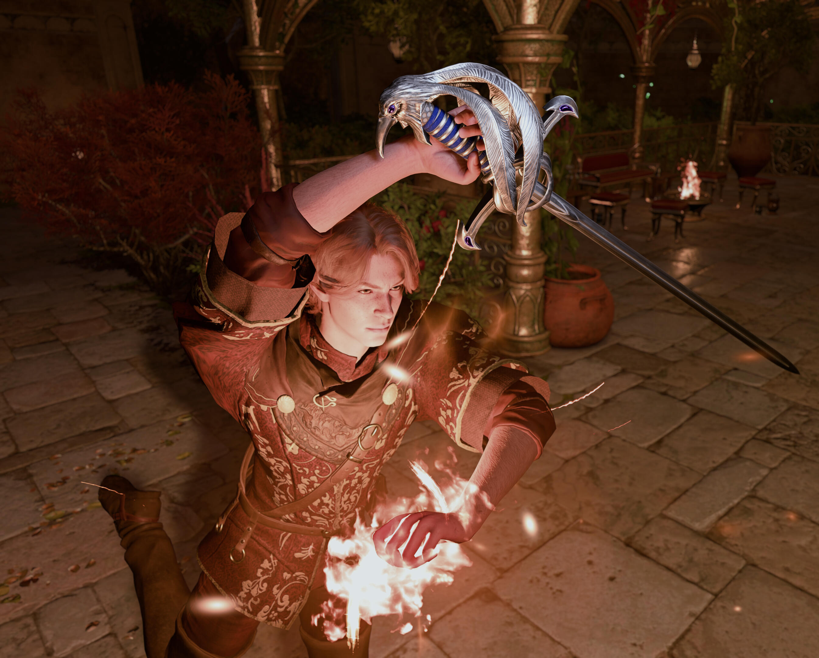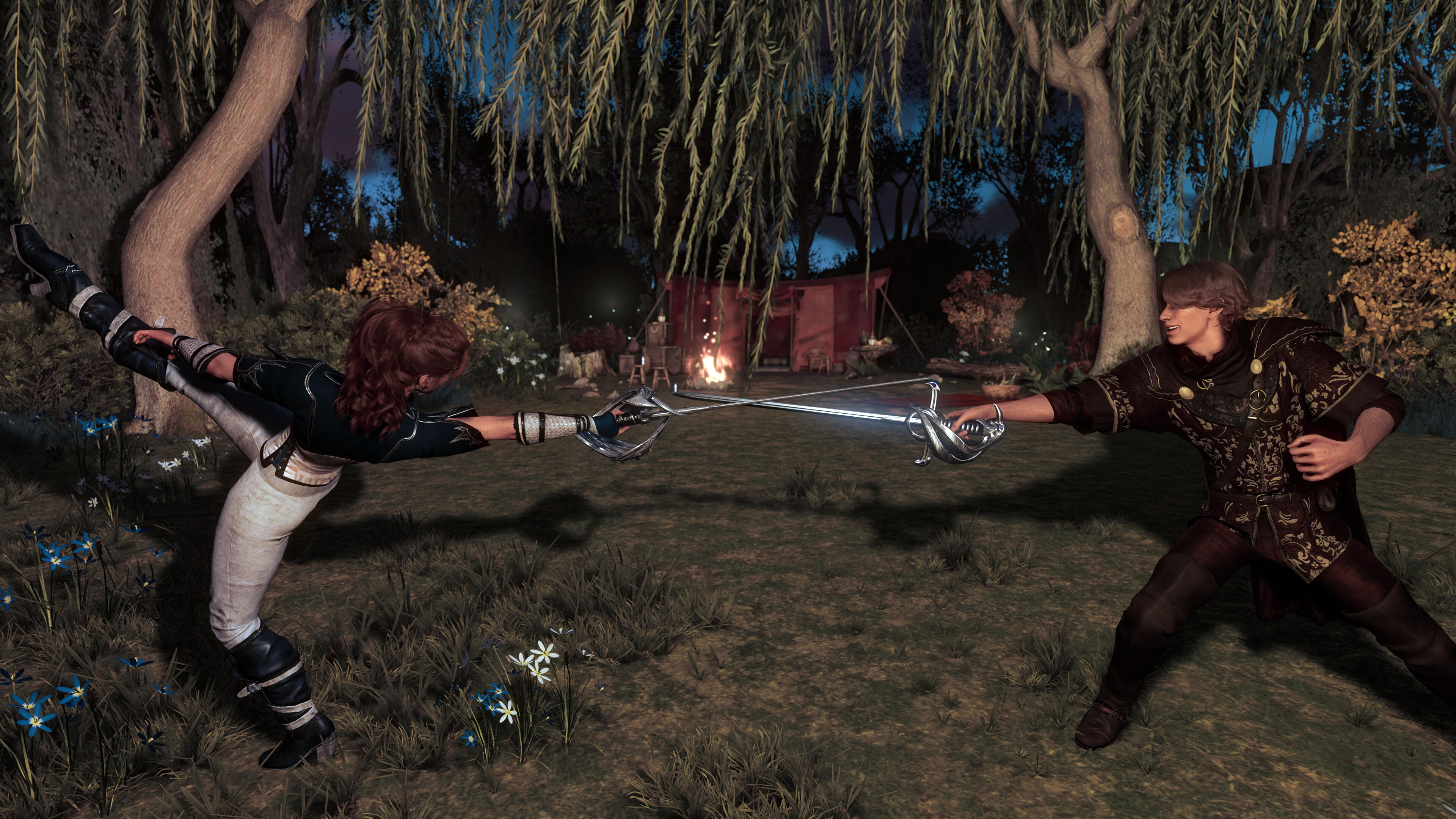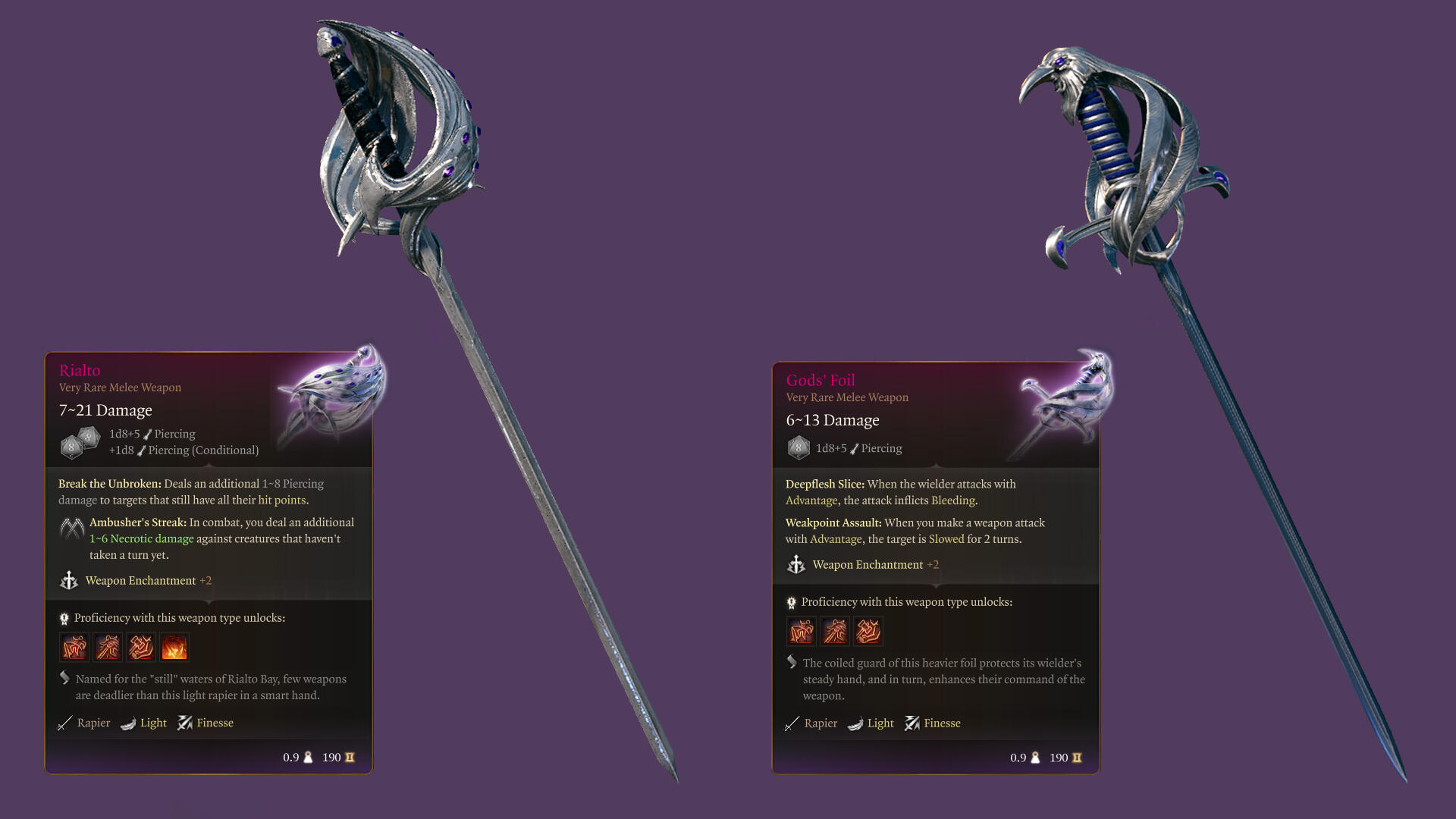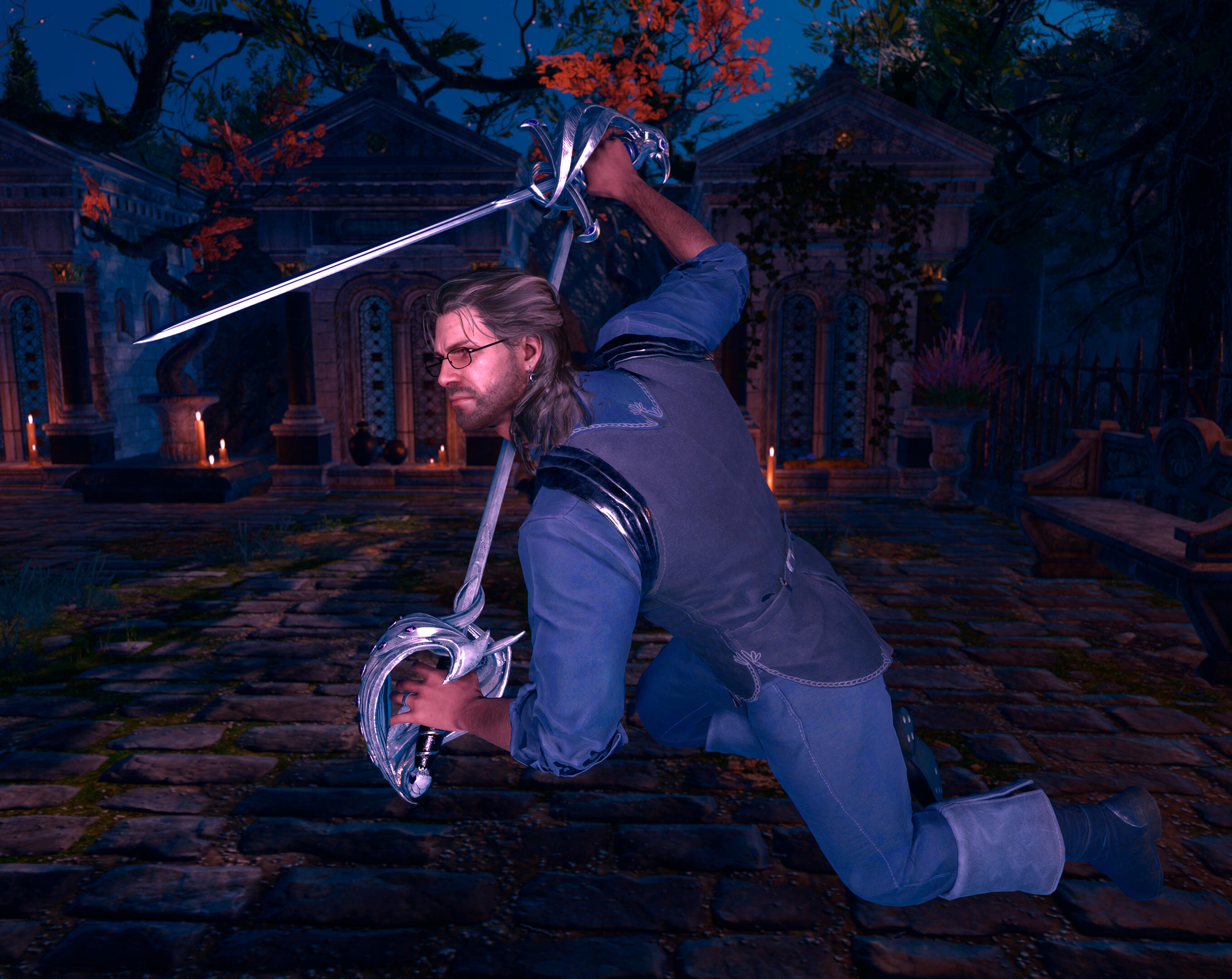 A collaboration with Kobold Juno- two rapiers used by Lucanis Dellamorte in Dragon Age: Veilguard. Preview images courtesy of the wonderful Primnose, Sol, and Anastasia.These have custom stats created specially for this mod by Juno, or they can be used with a Transmog mod if you just want the visuals (but you definitely want the stats, they're so good and Juno is a genius).