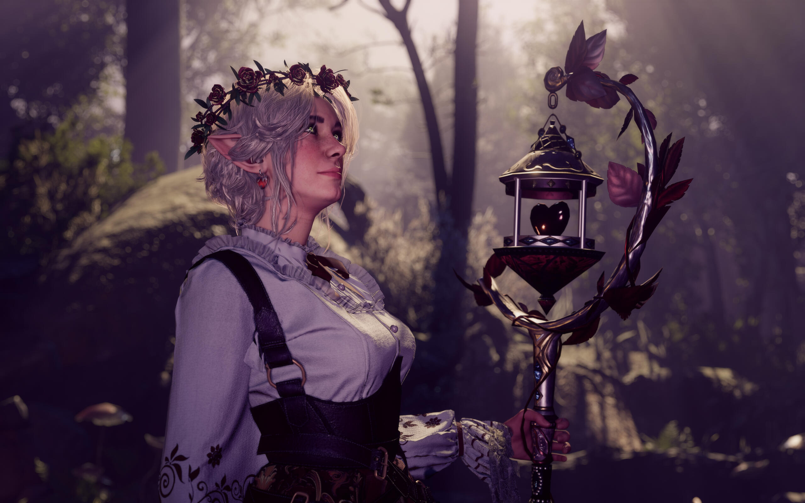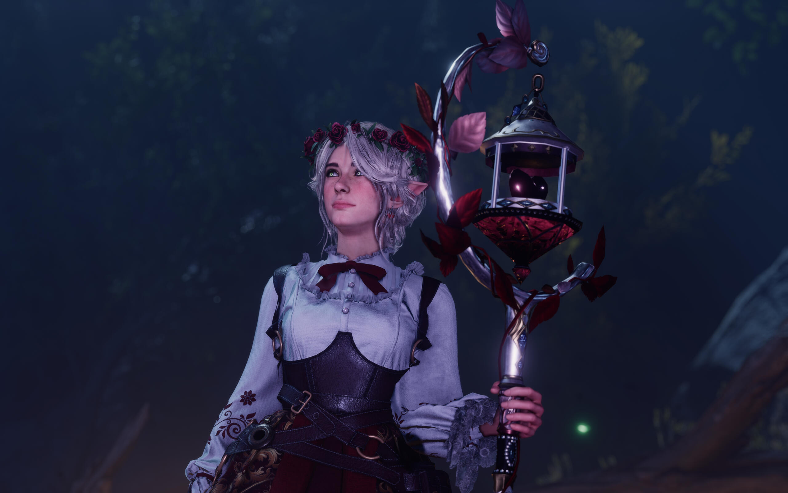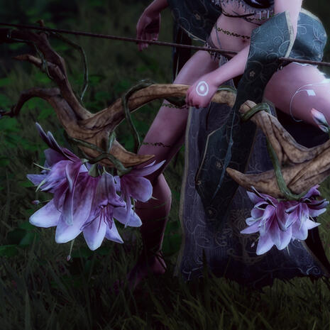 Floral Rogue bow ported from Dragon Age: Veilguard, requested by KoboldJuno. Has custom stats. Flowers on the main version are dyeable. Preview images courtesy of the wonderful Sol and Alyona.